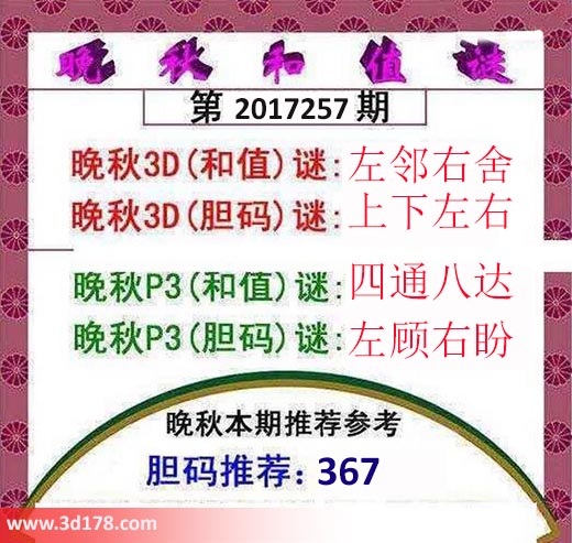 晚秋p3(和值)谜:四通八达