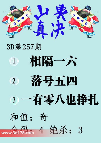 福彩3d第17257期山东真诀图如下所示: