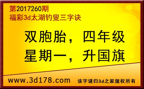 3d第17260期太湖字谜:双胞胎,四年级,星期一,升国旗