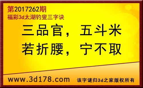 3d第17262期太湖字谜:三品官,五斗米,若折腰,宁不取