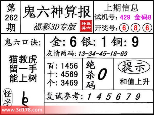 3d第17262期鬼六神算报为您推荐鬼六口诀: