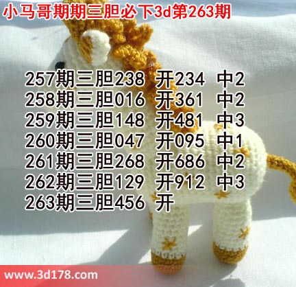 小马哥期期三胆必下263期推荐胆码:3d第17263期小马哥三胆预测如:257期三胆238 开234 中2258期三胆016 开361 中2259期三胆148 开481 中3260期三胆047 开095 中1261期三胆268 开686 中2262期三胆129 开912 中3263期三胆456 开小马哥胆码图由3d之家3d图库频道原创,仅供彩民参考,温馨提供。