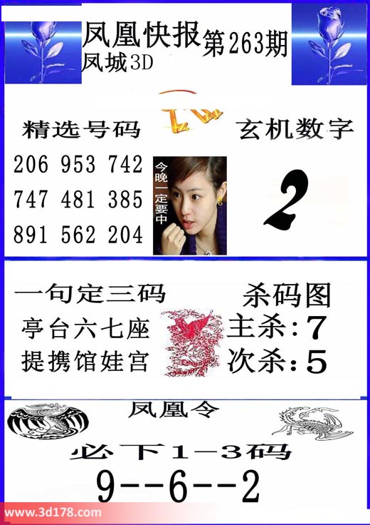 福彩3d凤凰快报图第17263期精选号码推荐: