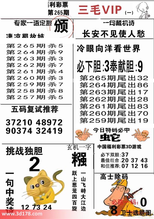 3d第2017265期三毛VIP详解: