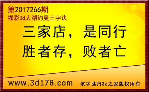 3d第17266期太湖字谜:三家店,是同行,胜者存,败者亡