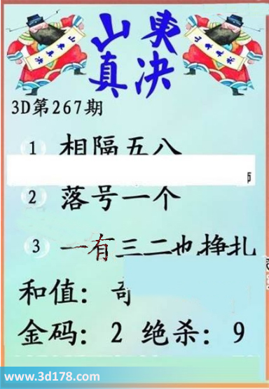 福彩3d第17267期山东真诀图如下所示:
