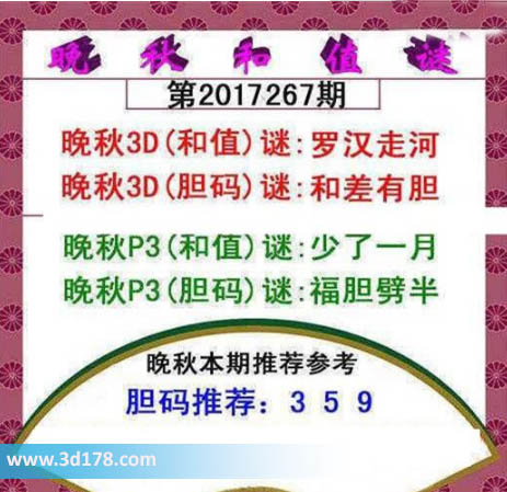 晚秋p3(和值)谜:少了一月