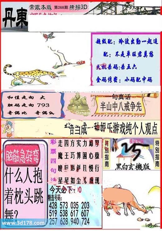 3d之家第2017268期丹东快报图:3d第2017268期丹东快报图详解:天机杀码:杀五六和值走向:大胆码走向:793奇偶比:1:2金码传密:小码配中码精选号码:428 573 035 203 519 538 617 607 257 628 940 724脑筋急转弯:什么人抱着枕头跳舞?该丹东图库由3d之家3d图库频道原创,仅供彩民参考,温馨提供。