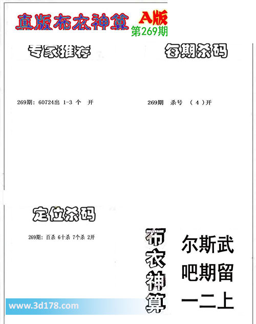 布衣神算:尔斯武,吧期留,一二上