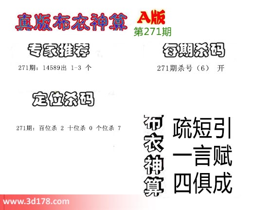 3d之家布衣图库之布衣神算图第2017271期详解: