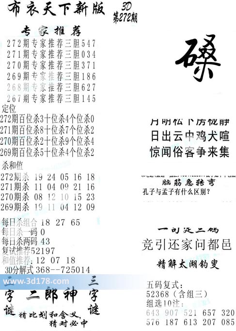 ‍福彩3d第2017272期福彩3d布衣天下新版: