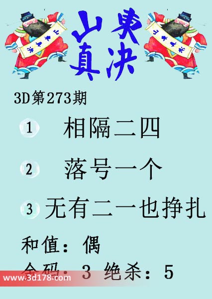 福彩3d第17273期山东真诀图如下所示: