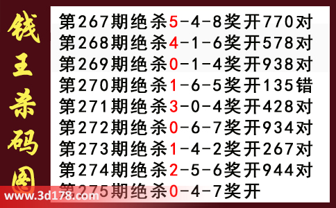 近期3d钱王杀码具体详情: