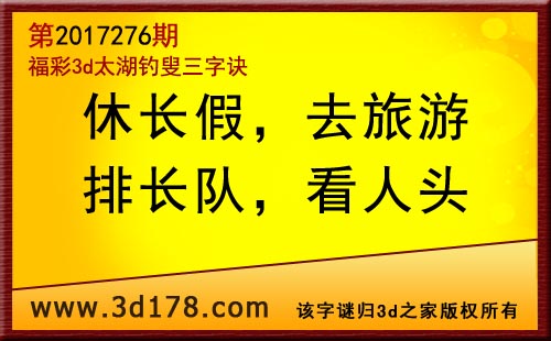 3d第17276期太湖字谜:休长假,去旅游,排长队,看人头