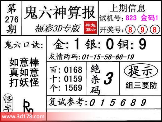 3d第17276期鬼六神算报为您推荐鬼六口诀: