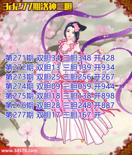 本期洛神三胆图胆码推荐如下: