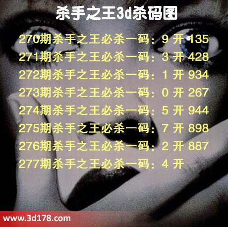 第2017277期3d之家杀手之王杀码图: