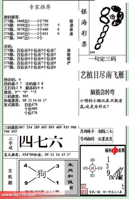 277期:百位杀3 十位杀4 个位杀6