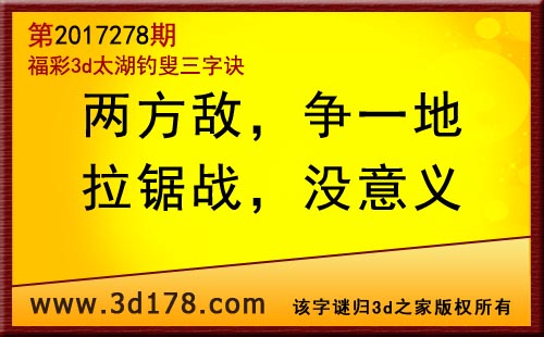 3d第17278期太湖字谜:两方敌,争一地,拉锯战,没意义