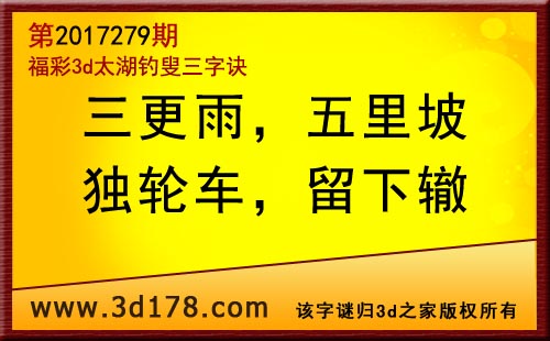 3d第17279期太湖字谜:三更雨,五里坡,独轮车,留下辙
