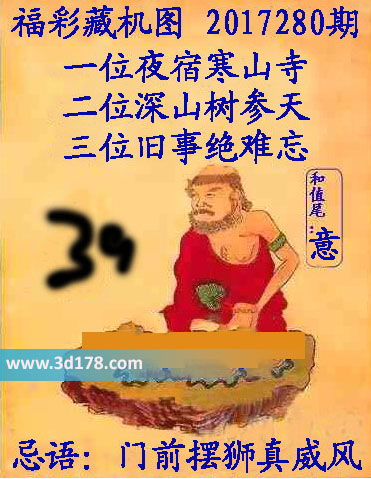 福彩3d第2017280期正版藏机图详解: