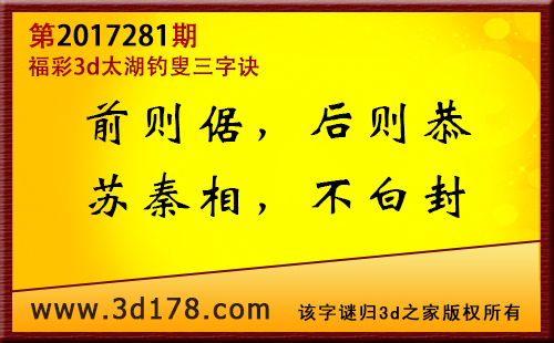 3d第17281期太湖字谜:前则倨,后则恭,苏秦相,不白封