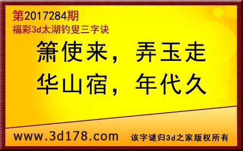 3d第17284期太湖字谜:箫使来,弄玉走,华山宿,年代久
