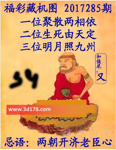 福彩3d第2017285期正版藏机图详解:3d之家3d藏机图第17285期本期为您详细解答:一位聚散两相依二位生死由天定三位明月照九州和尾:又忌语:两朝开济老臣心3d正版藏机图由3d之家3d图库频道原创,仅供彩民参究底考,温馨提供。