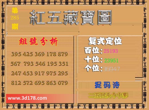 福彩3d第2017285期红五藏宝图: