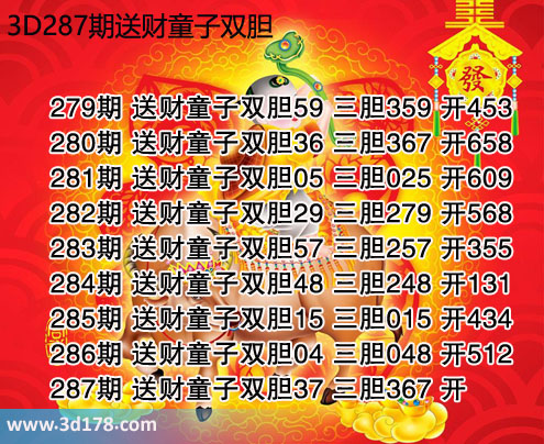 下面我们一起来回顾一下3d之家胆码图送财童子三胆近期推荐详情: