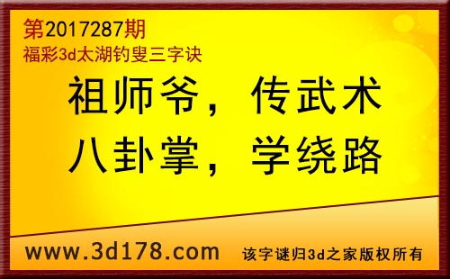 3d第17287期太湖字谜:祖师爷,传武术,八卦掌,学绕路