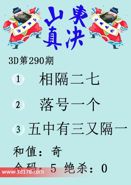 福彩3d第17290期山东真诀图如下所示: