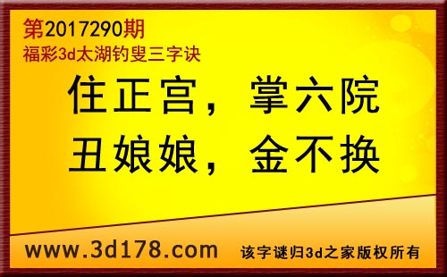 3d第17290期太湖字谜:住正宫,掌六院,丑娘娘,金不换