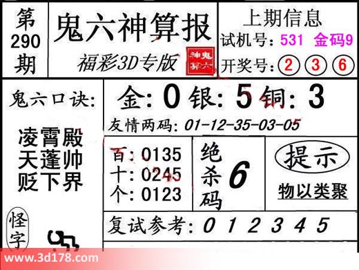 3d第17290期鬼六神算报为您推荐鬼六口诀: