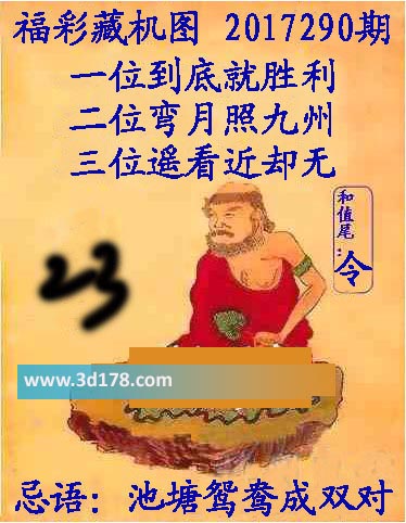 福彩3d第2017290期正版藏机图详解:3d之家3d藏机图第17290期本期为您详细解答:一位到底就胜利二位弯月照九州三位遥看近却无和尾:令忌语:池塘鸳鸯成双对3d正版藏机图由3d之家3d图库频道原创,仅供彩民参究底考,温馨提供。