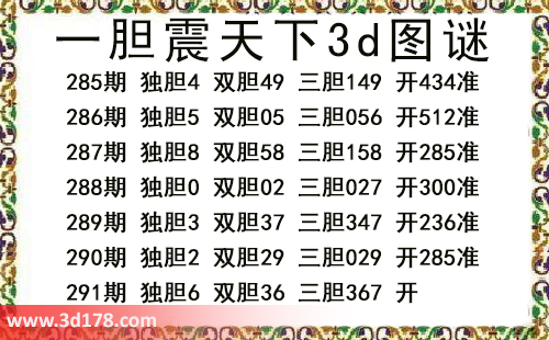 一胆震天下三胆图库由3d之家3d图库频道原创,仅供彩民参考,温馨提供。