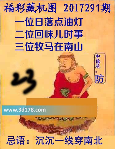 福彩3d第2017291期正版藏机图详解:3d之家3d藏机图第17291期本期为您详细解答:一位日落点油灯二位回味儿时事三位牧马在南山和尾:防忌语:沉沉一线穿南北3d正版藏机图由3d之家3d图库频道原创,仅供彩民参究底考,温馨提供。