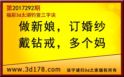 3d第17292期太湖字谜:做新娘,订婚纱,戴钻戒,多个妈