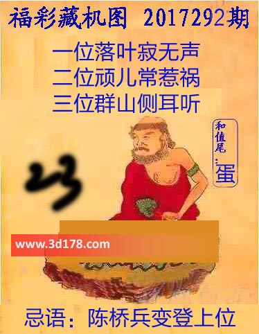福彩3d第2017292期正版藏机图详解:3d之家3d藏机图第17292期本期为您详细解答:一位落叶寂无声二位顽儿常惹祸三位群山侧耳听和尾:蛋忌语:陈桥兵变登上位3d正版藏机图由3d之家3d图库频道原创,仅供彩民参究底考,温馨提供。