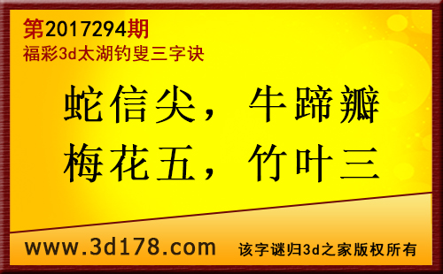 3d第17294期太湖字谜:蛇信尖,牛蹄瓣,梅花五,竹叶三