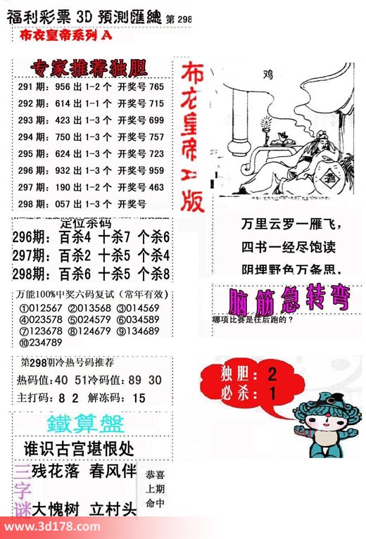 福彩3d第2017298期布衣皇帝A版布衣专家独家推荐: