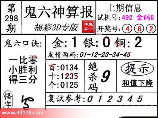 3d第17298期鬼六神算报为您推荐鬼六口诀: