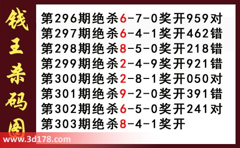 近期3d钱王杀码具体详情: