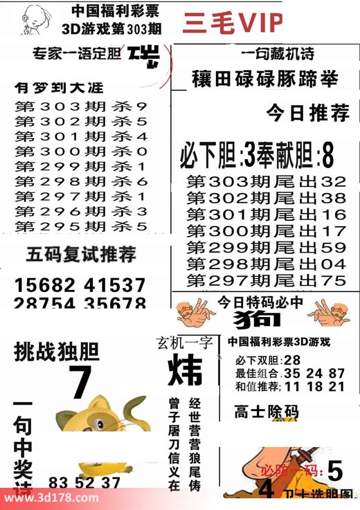 3d第2017303期三毛VIP详解: