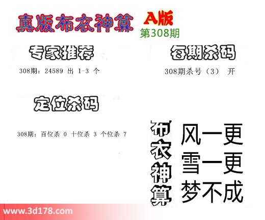 3d之家布衣图库之布衣神算图第2017308期详解: