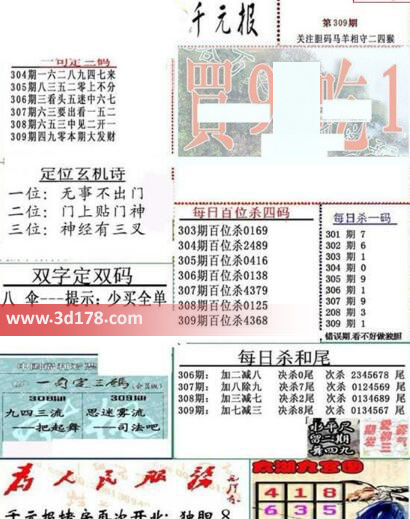 福彩3d第2017309期布衣千元报图详情分析如下: