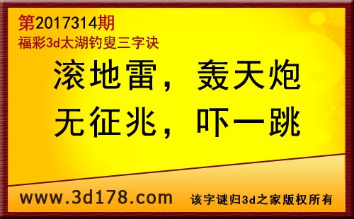 3d第17314期太湖字谜:滚地雷,轰天炮,无征兆,吓一跳