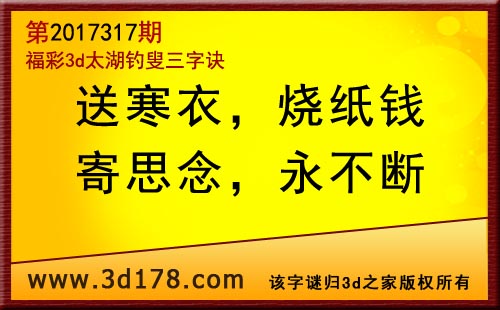 3d第17317期太湖字谜:送寒衣,烧纸钱,寄思念,永不断