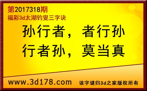 3d第17318期太湖字谜:孙行者,者行孙,行者孙,莫当真