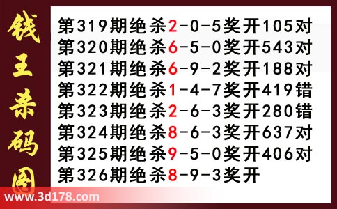 近期3d钱王杀码具体详情: